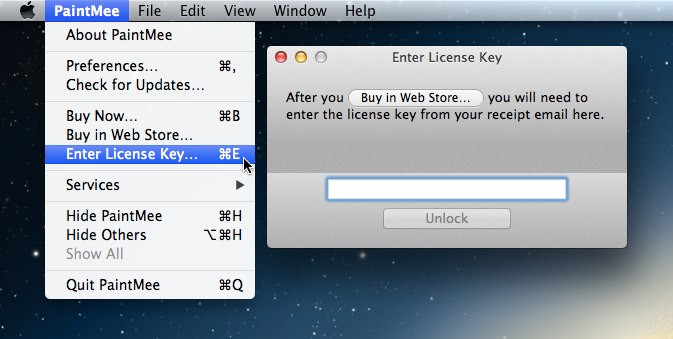 StackSocialのプロモーションでダウンロードした方はメニューバーから[Licence Key]を入力することでトライアルモードを解除出来ます。