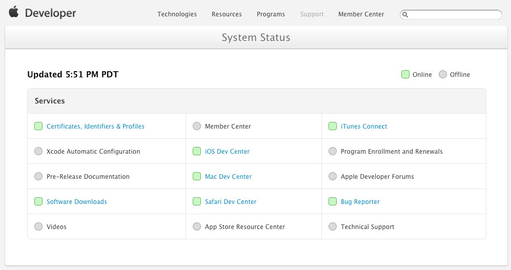 [Developer System Status– Apple]