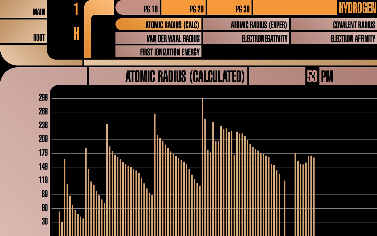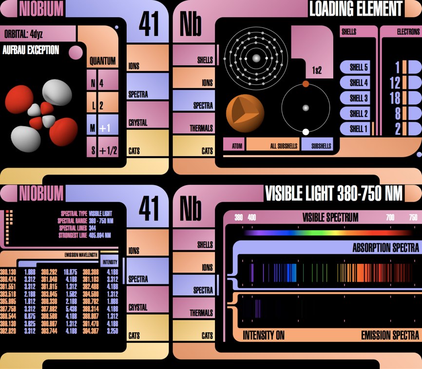 情報量はかなり多く、質量から電子各構造、結晶構造(3D)、吸収・発光スペクトル、イオン化エネルギーなど様々な情報が見られます。