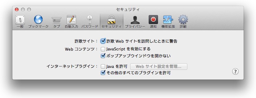 1.Safariの「環境設定→セキュリティ→WebコンテンツでJavaScriptをOFFにする