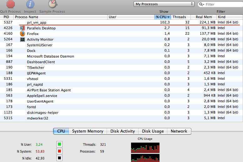 ・prl_vm_app @ 99.9% CPU on Mac OS X 10.7