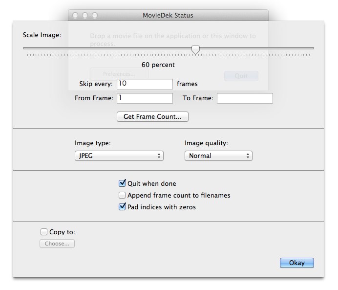 MovieDekは動画ファイルをドラッグ&ドロップするだけで、動画のキャプチャ(サムネイル)画像を作成してくれるアプリです。