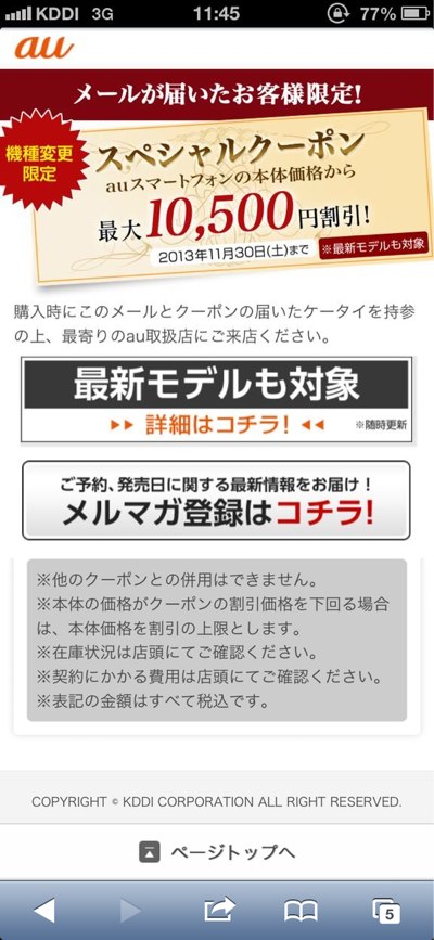 auがiPhoneの買い替えに割引クーポンを発行!機種変組が報われる日が来たぞ! http://t.co/s9I6JQpbUp #iPhonejp