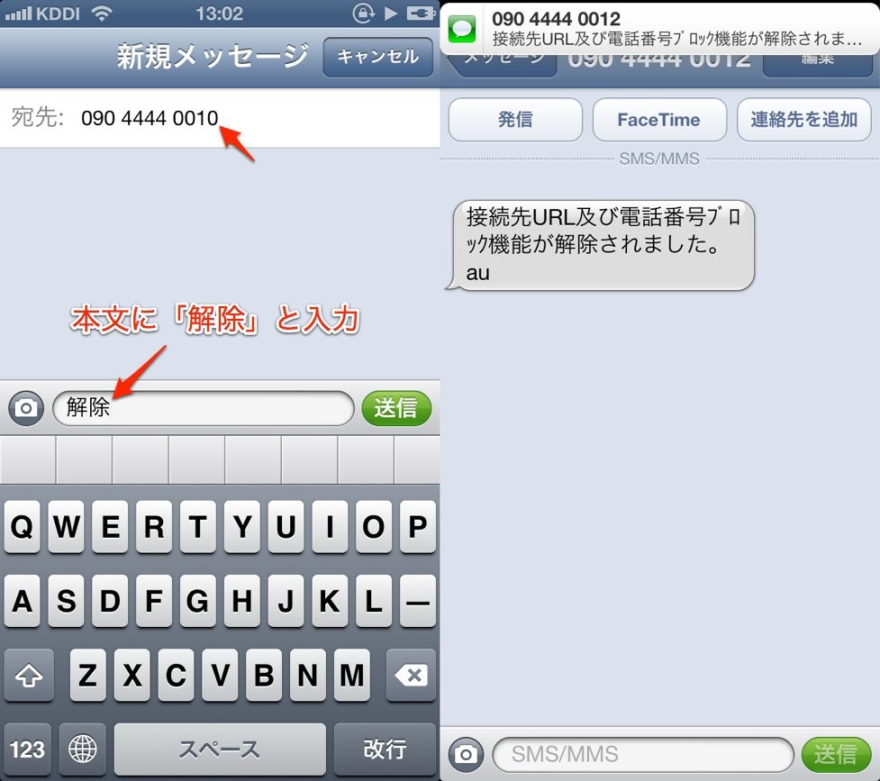 auは自動的にURL含むSMSをブロックしちゃうよ