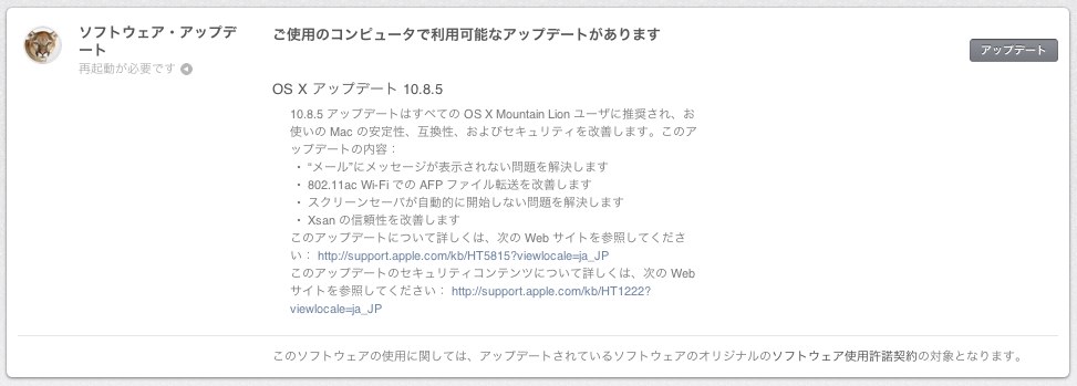 Apple、「OS X Mountain Lion 10.8.5」公開、脆弱性の修正など http://t.co/jQzXWMTnuZ