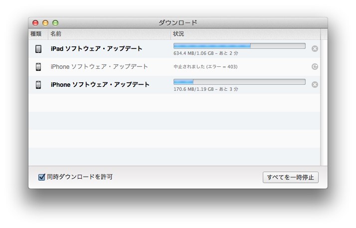 iTunesでiPadのアップデートきたな、やはりこっちのが早くていいわ