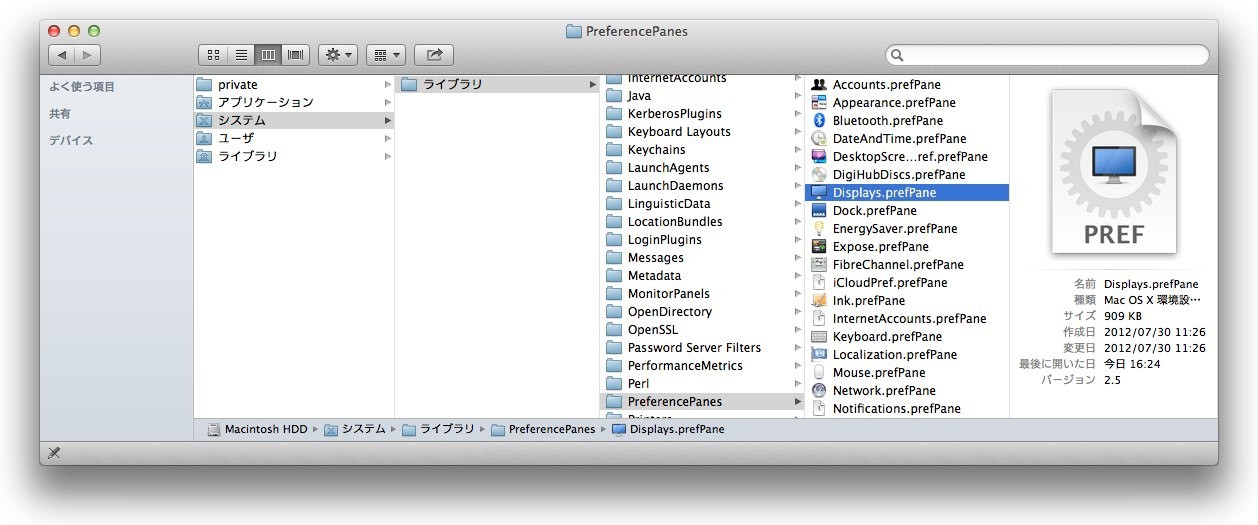 2.「/System/Library/ColorSync/Profiles」(または~/Library/ColorSync/Profiles)フォルダ移動