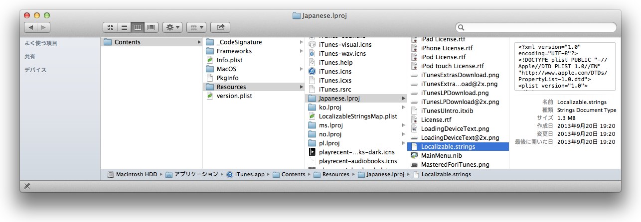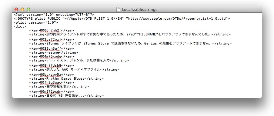 iTunes 11.1からLocalizable.stringsがbinaryファイルに…