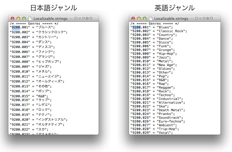 Japanese.lproj/Localizable.strings の日本語ジャンル名を、