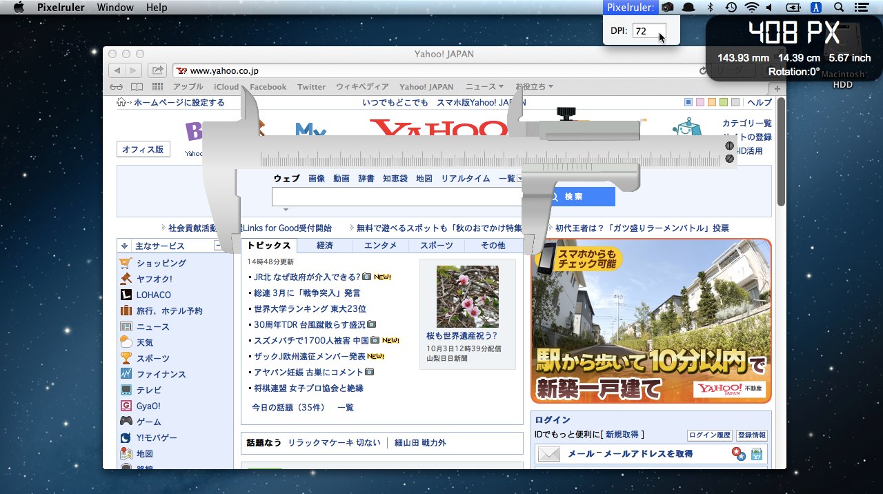 Pixelrulerはデスクトップ上にあるオブジェクトの長さを測れるノギスアプリです。