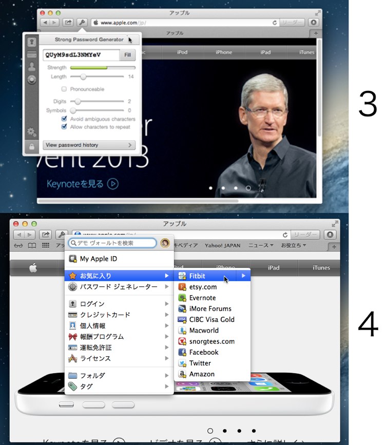 *その他iOSデバイスとのWi-Fi同期(まだiOSアプリ側が未対応)などがあるそうですが、for Macを使用して見た限りでは3より多機能になっているので、1Passwordユーザーはダウンロードしてデモヴォールトで使用してみるといいかもしれません。
