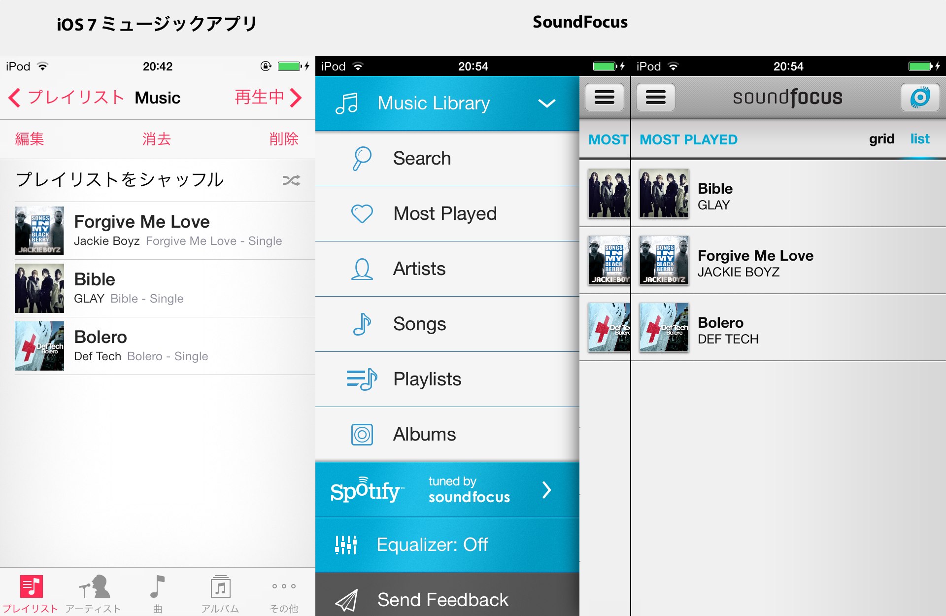 *左からiOS 6, 7, music.jp, SoundFocus, Laguです。music.jpがiOS 6風で、LaguがiOS 5風だそうです。