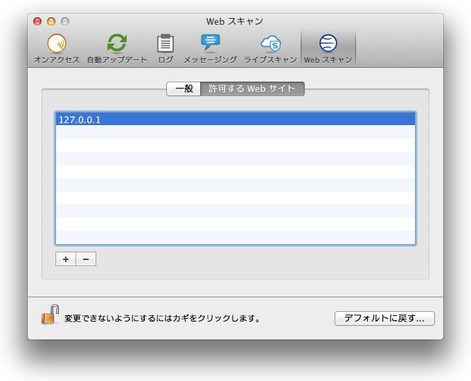 ほんとだ、Webスキャンの「許可するWebサイト」に