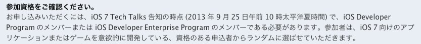 Thanks for your interest in attending the iOS 7 Tech Talks in Tokyo.