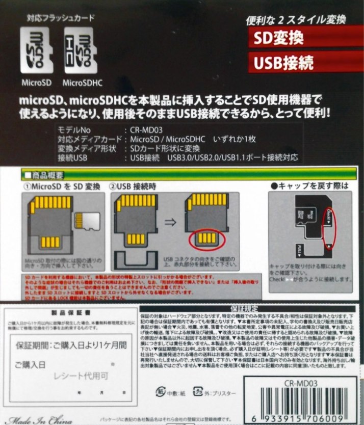 1.microSD↔SD/USB変換アダプタ「CR-MD03」を購入。