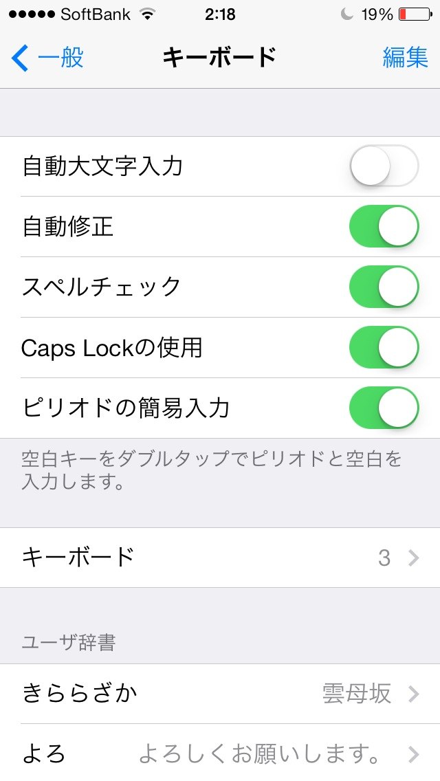 なんかiOS7でユーザー辞書が多いとか長い文字を