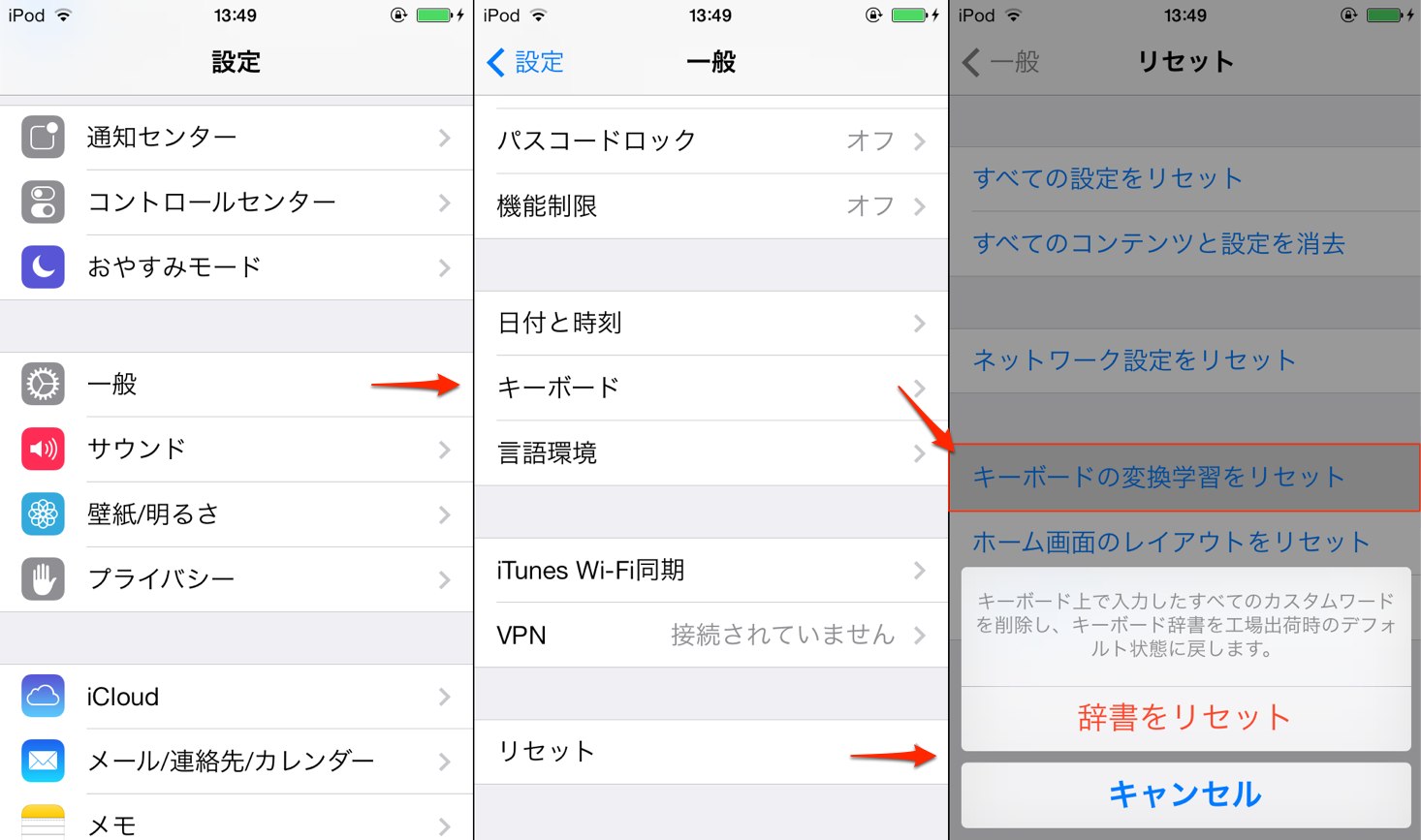 ユーザー辞書やiCloud同期、変換学習リセットなどで解決する?