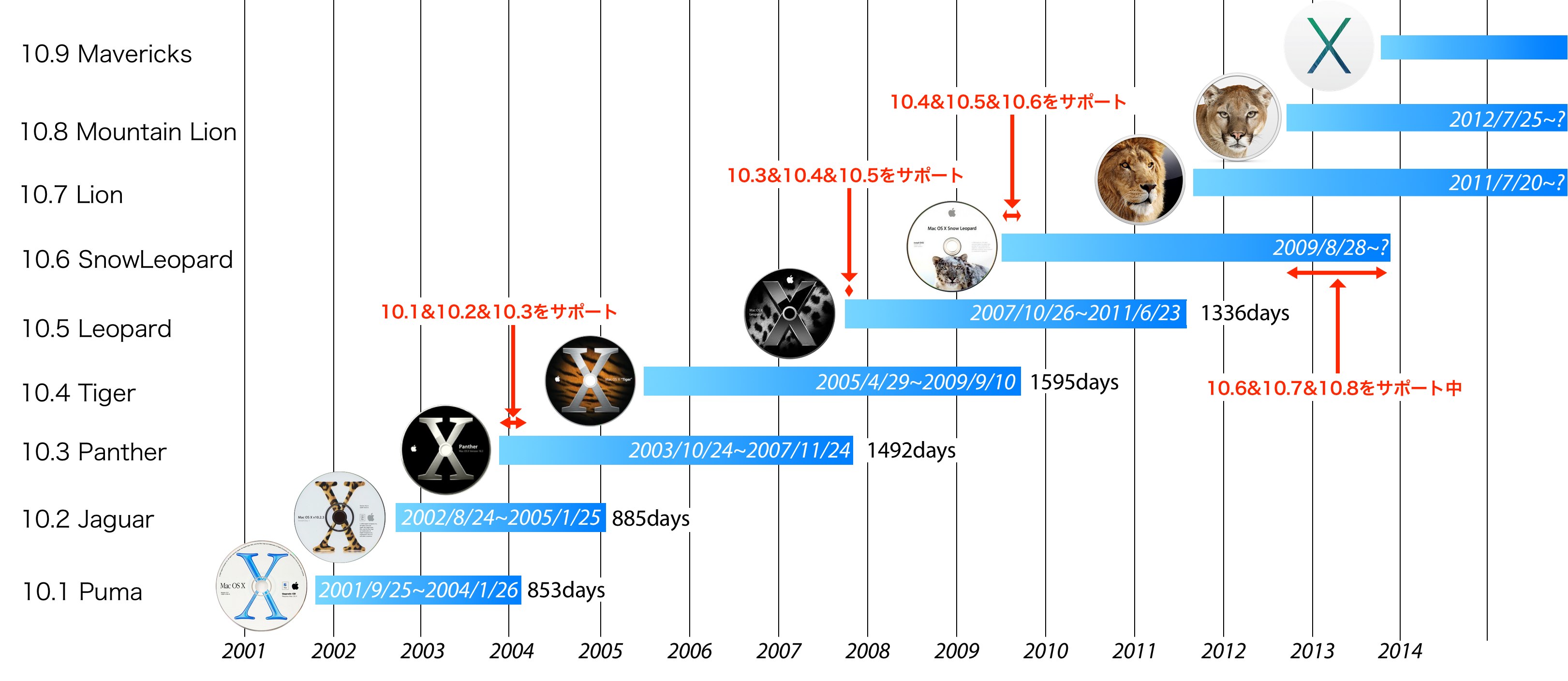 OS XになってからAppleが同時に3OS以上をサポートしたことってなくね?