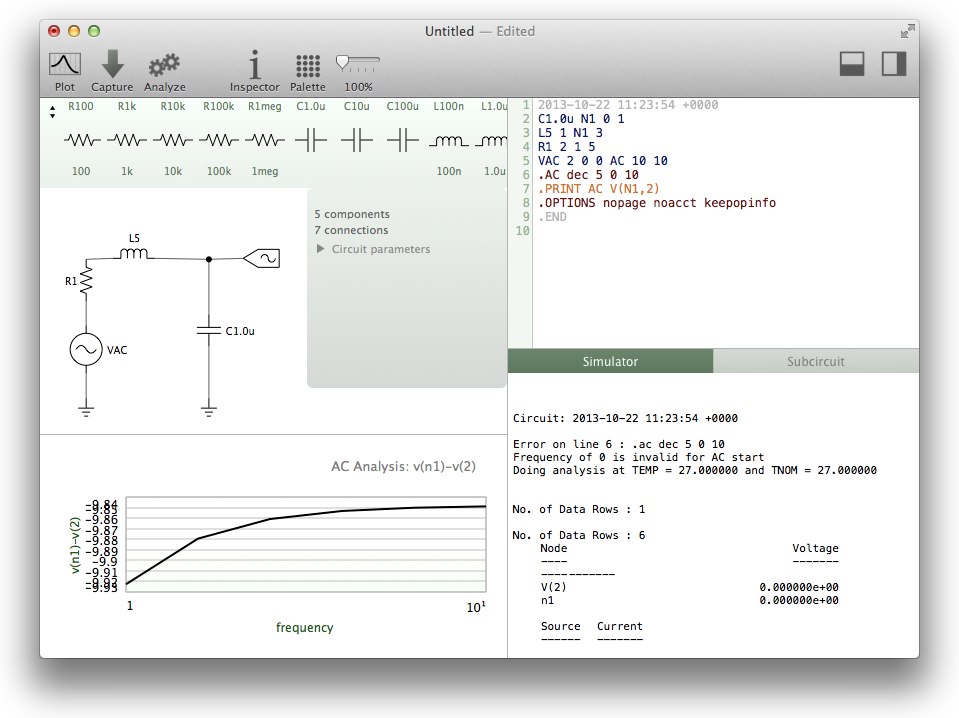 VoltaはMacで使えるSPICE回路シミュレータアプリです。