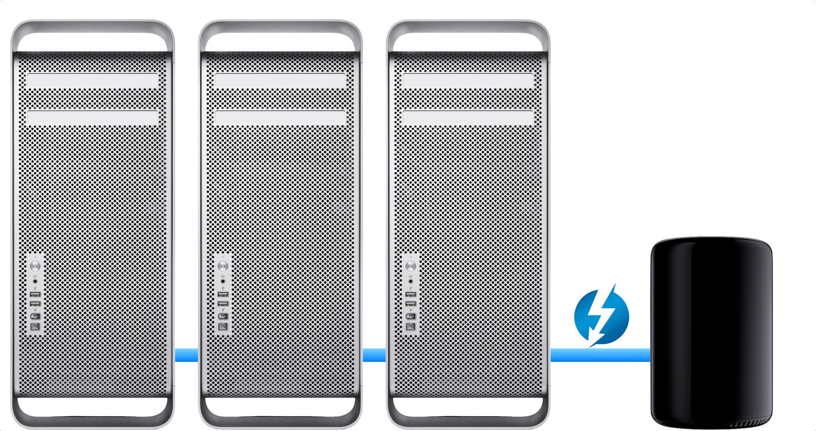 PCIeをThunderboltにする拡張カードが出るかは疑問ですが、MacPro Late 2013をThunderbolt ハブにしてネットワークを構築することも可能?