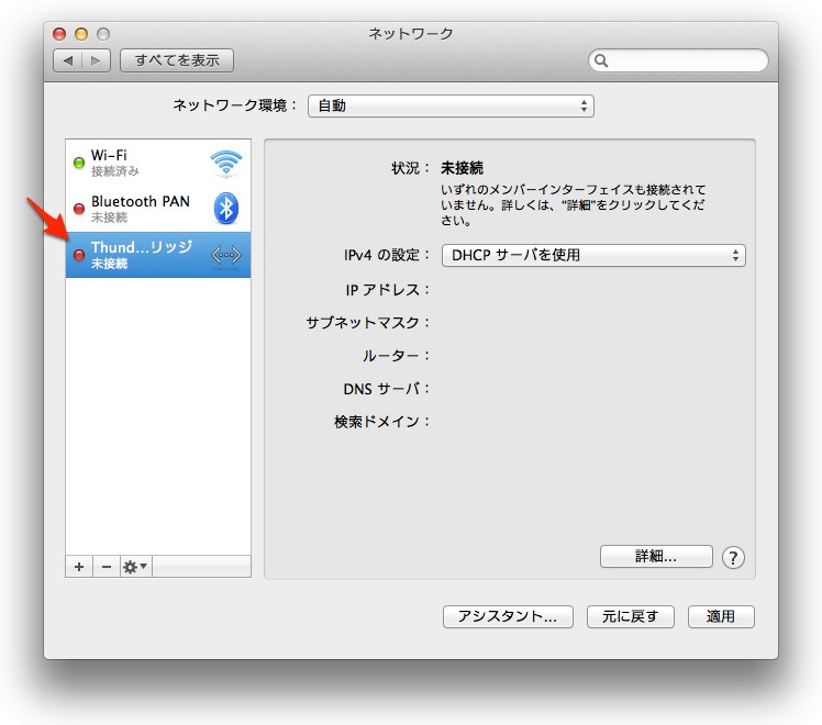 *Mavericksのシステム環境設定.app>ネットワークには「Thunderboltブリッジ」項目が追加されています。
