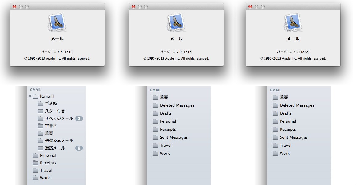 ・Apple、OS X MavericksからMail.appの仕様を変更しGmailの扱いや送受信に不具合。また、テキストエンコーディング設定が消えプラグインも使用できない状態へ。![]()