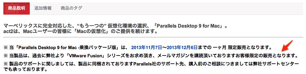 その第一歩としまして、過去に弊社より「VMware Fusion」シリーズをお求め頂き、act2 メルマガ購読者の皆様に限り「Parallels Desktop 9 乗換版」を、どこよりも安い価格でご提案させて頂く次第です。