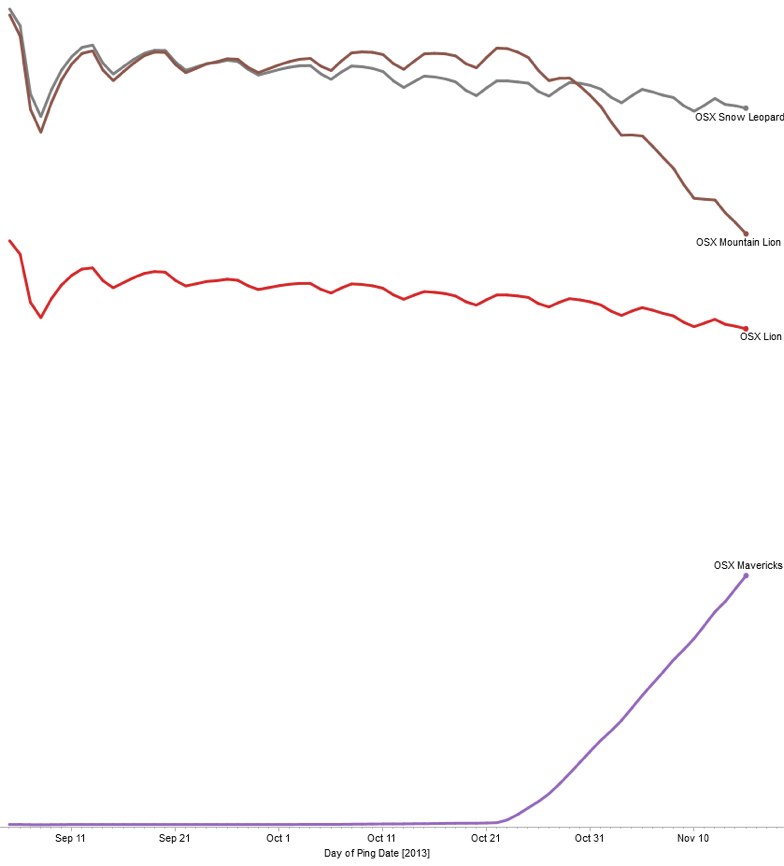 >OS X Mavericks、普及速度はMountain Lionを大幅に上回り、既に10%以上のMacで稼働中