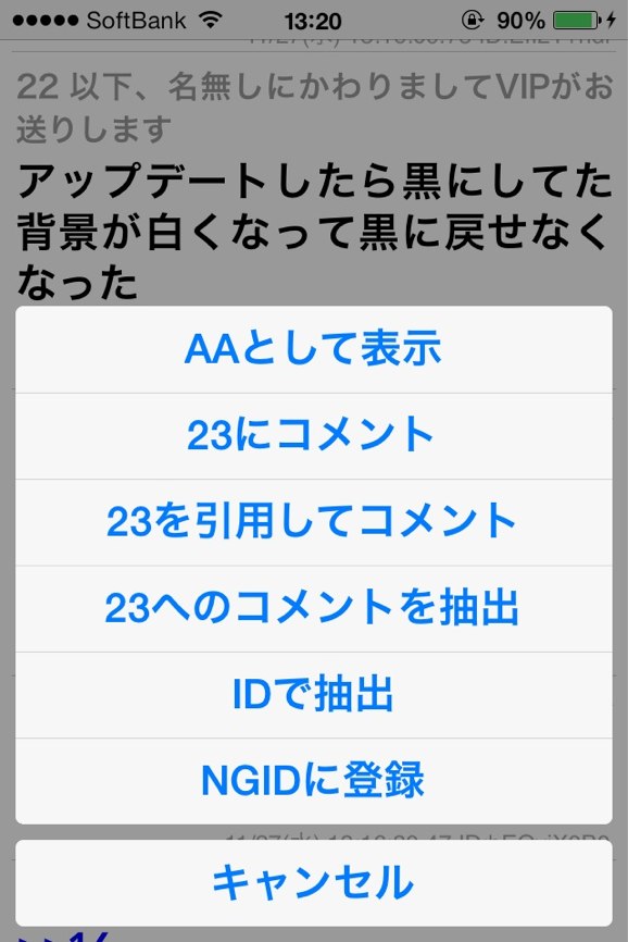 *背景を反転(明るい背景から暗い背景へ)したい場合は、スレッド中をタップし、スクロールバーの左側にある◯をタップします。
