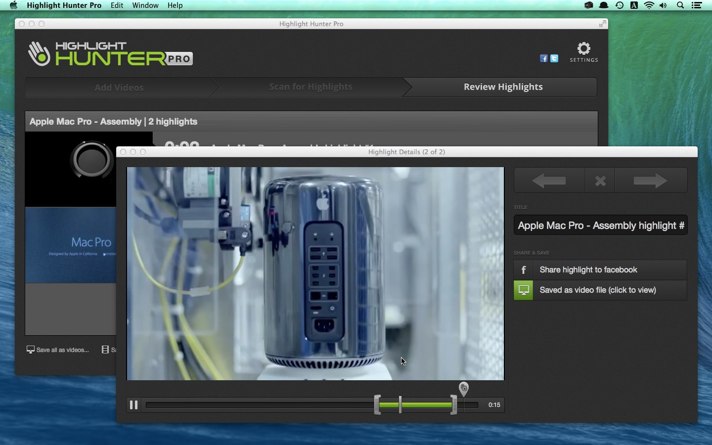 Highlight Hunter Proは動画を解析しハイライトシーンをリスト表示してくれるアプリです。