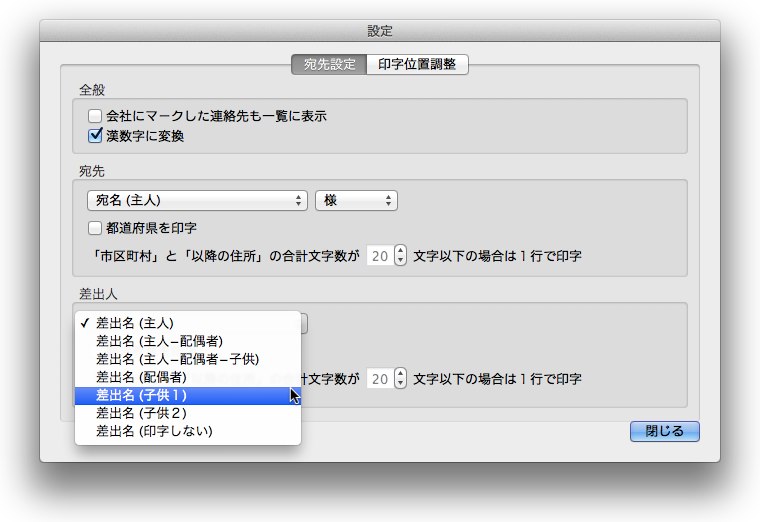 ・宛先に配偶者、子供、会社を含める(印刷しない)