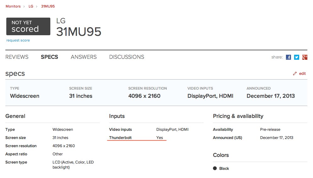 4096×2160で入力がThunderbolt2、DP、HDMIでAdobeRGB対応か。イイね
