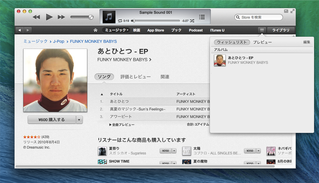 [iTunes Store表示時のウィッシュリスト]