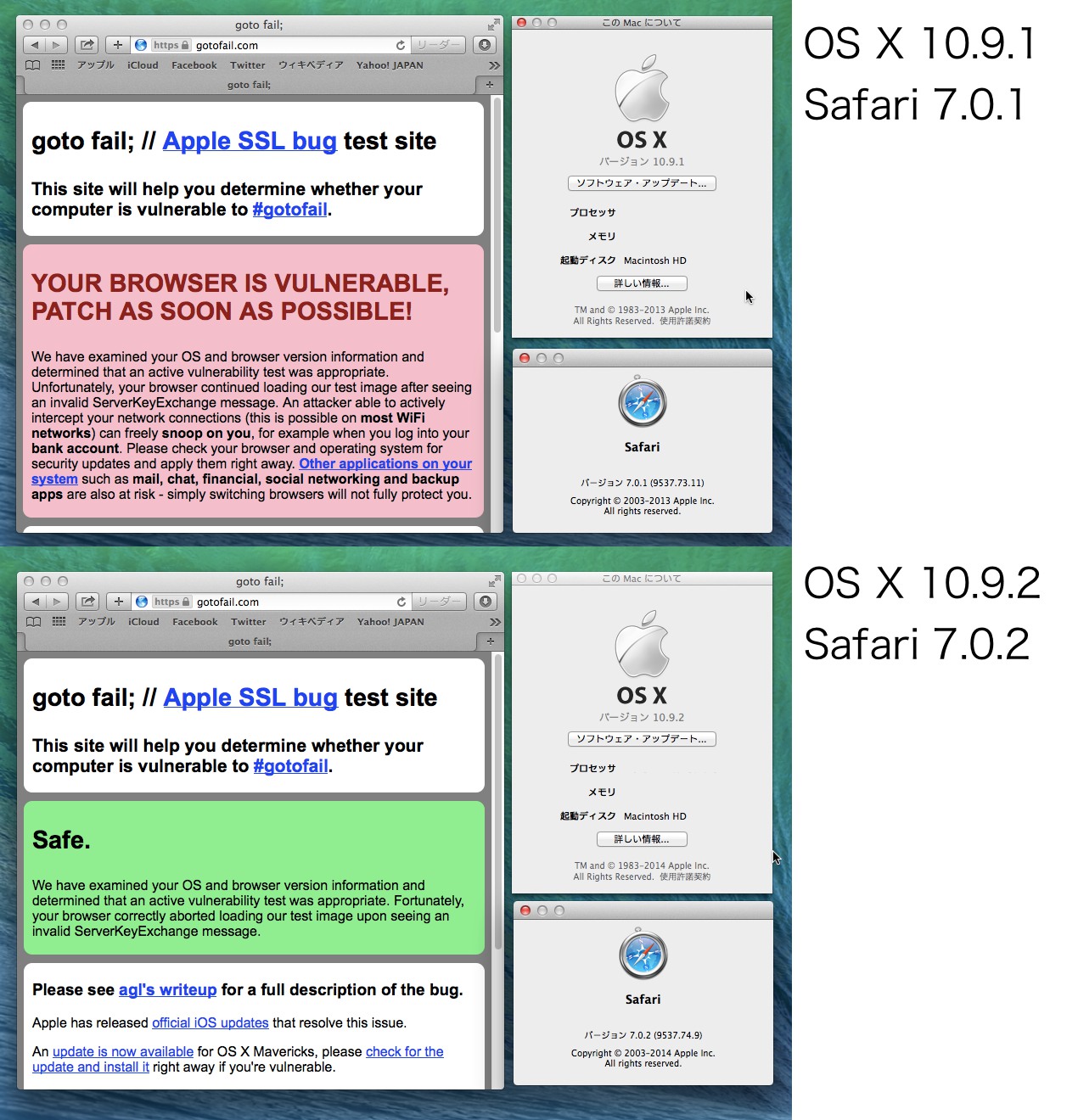 Appleは26日、OS X 10.9.2をリリースしOS X 10.9, 10.9.1に存在したSSL/TLSの脆弱性(gotofail)を修正したそうです。