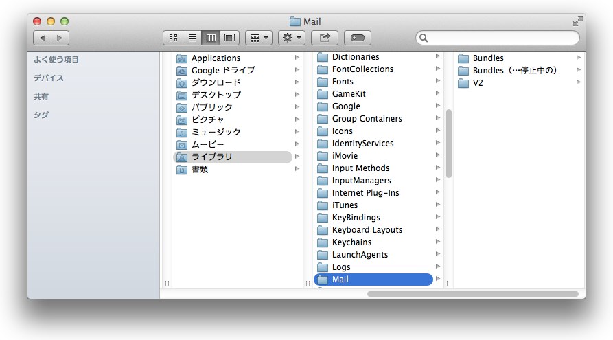 3.変更後もMail.appでラベルフォルダを選択するとアプリがクラッシュする場合は「~/Library/Mail ディレクトリ内の該当アカウントをデスクトップにでも移動し、再度受信すると動いた」という報告もあるようです。