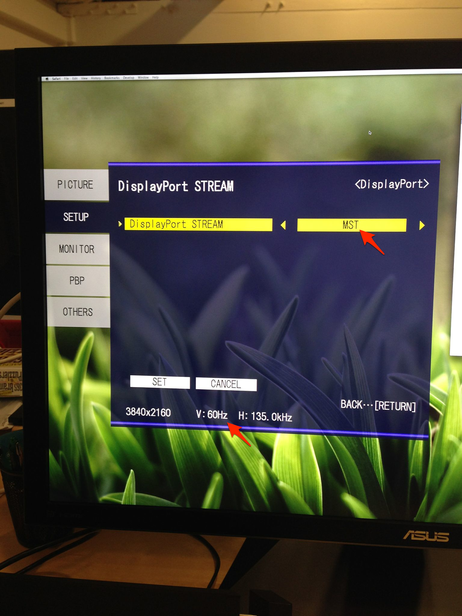 *kogirさんが使っているのはrMBP Late 2013 15インチモデルとAsus PQ321Qで、以前この組み合わせで試した時は「MacではSSTで4K@30Hzまで、Windows8.1ではMSTで4K@60Hzが出力可能だった」とレポートしています[1, 2]。
