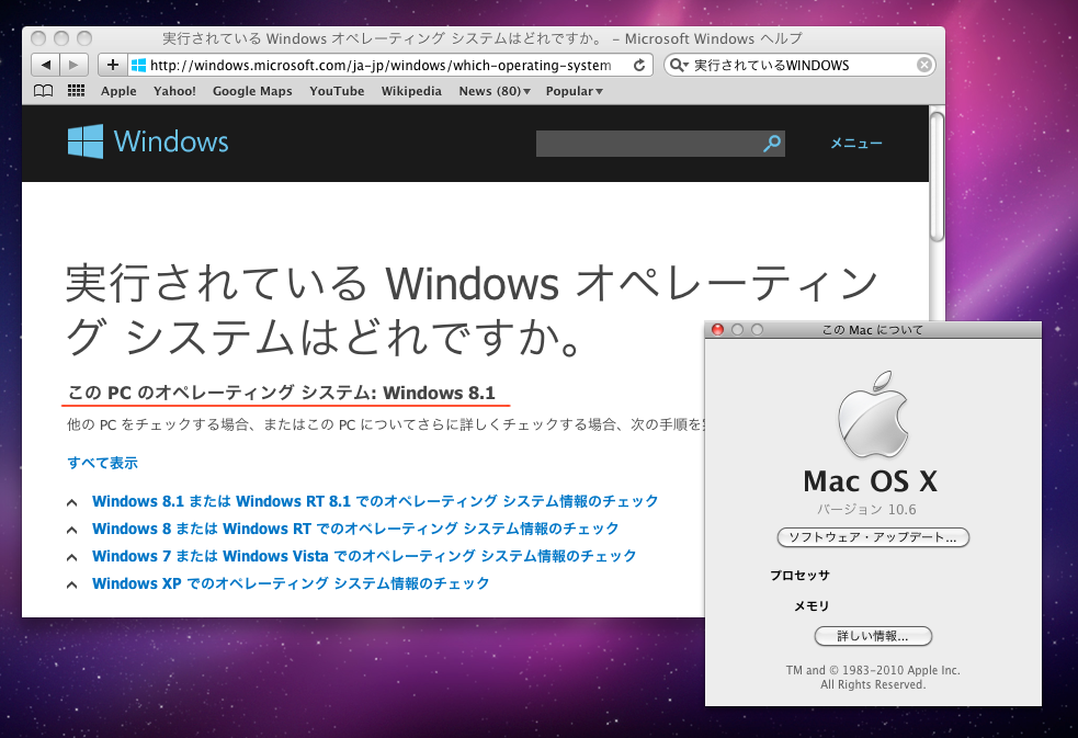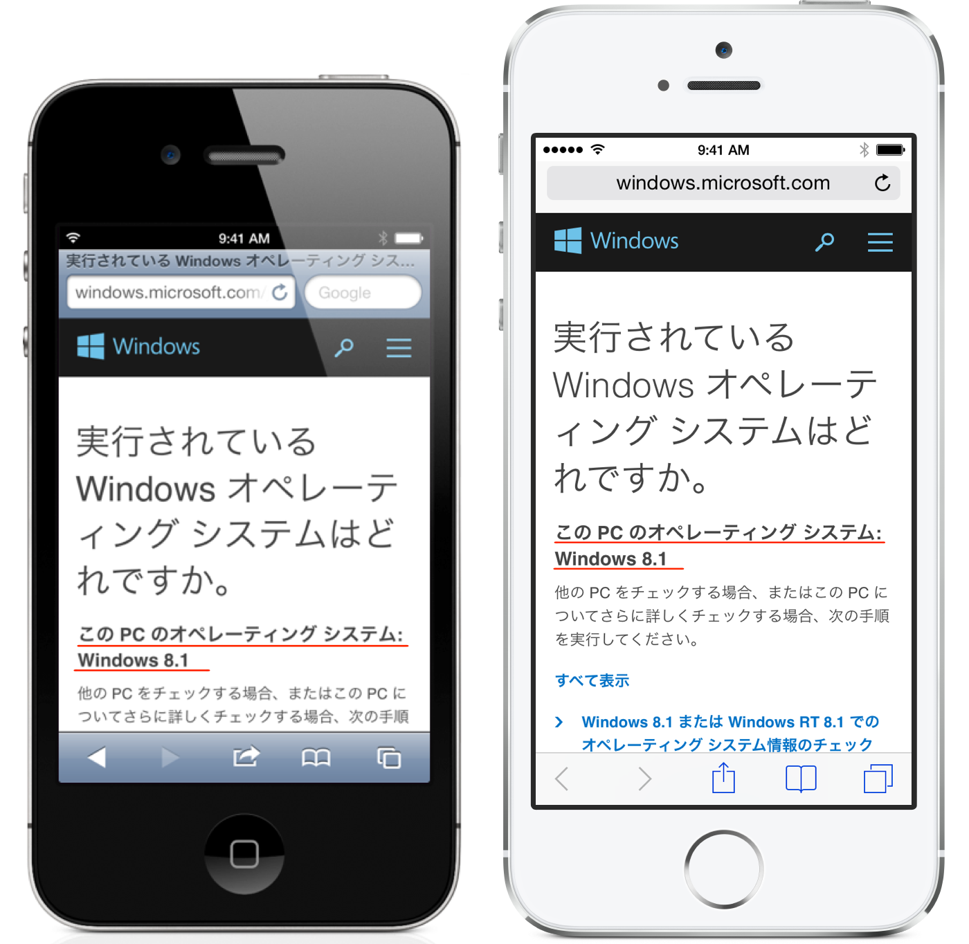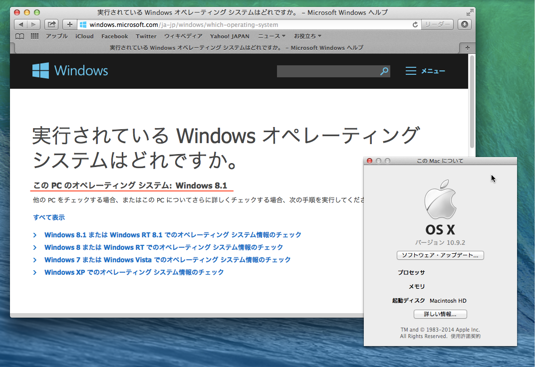 Microsoftが公開しているWindowsのバージョンを教えてくれるページにアクセスすると使用しているOSのバージョンを表示してくれるそうですが、OS XやiOSでこのページにアクセスすると「Windows 8.1」と表示されるそうなのでやってみました。詳細は以下から。