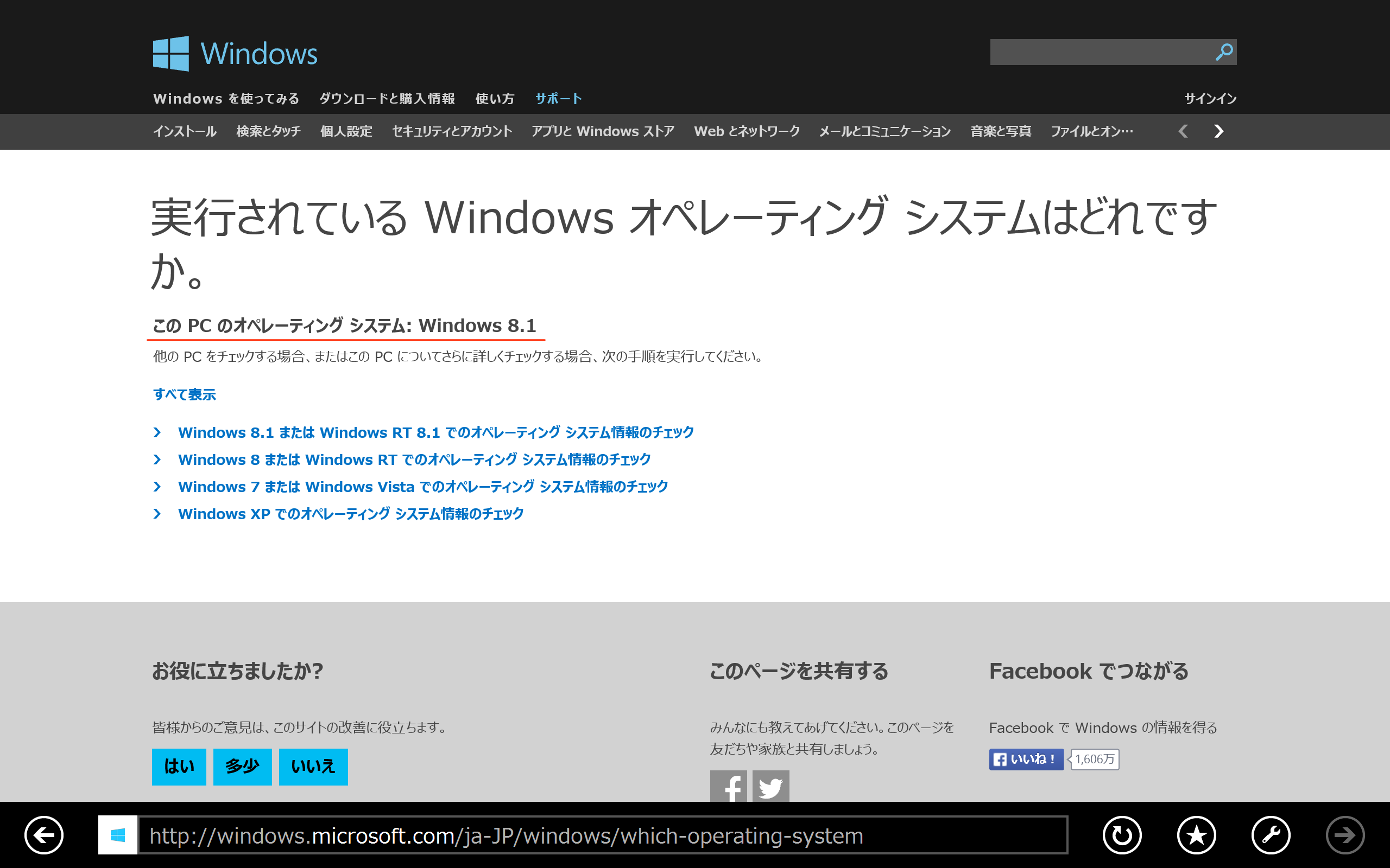 Windows 8.1 PCでアクセスすると「この PC のオペレーティングシステム:Windows 8.1」の表示で正しいようですが…