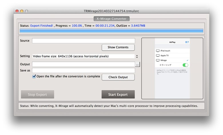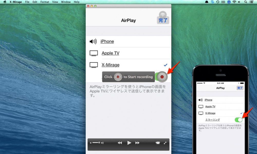 X-MirageはAirPlayやAIrPlayミラーリングをMacで表示出来るアプリです。