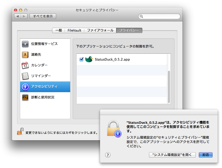 Status Duckを使用する場合はAccessibilityを有効にする必要があります。