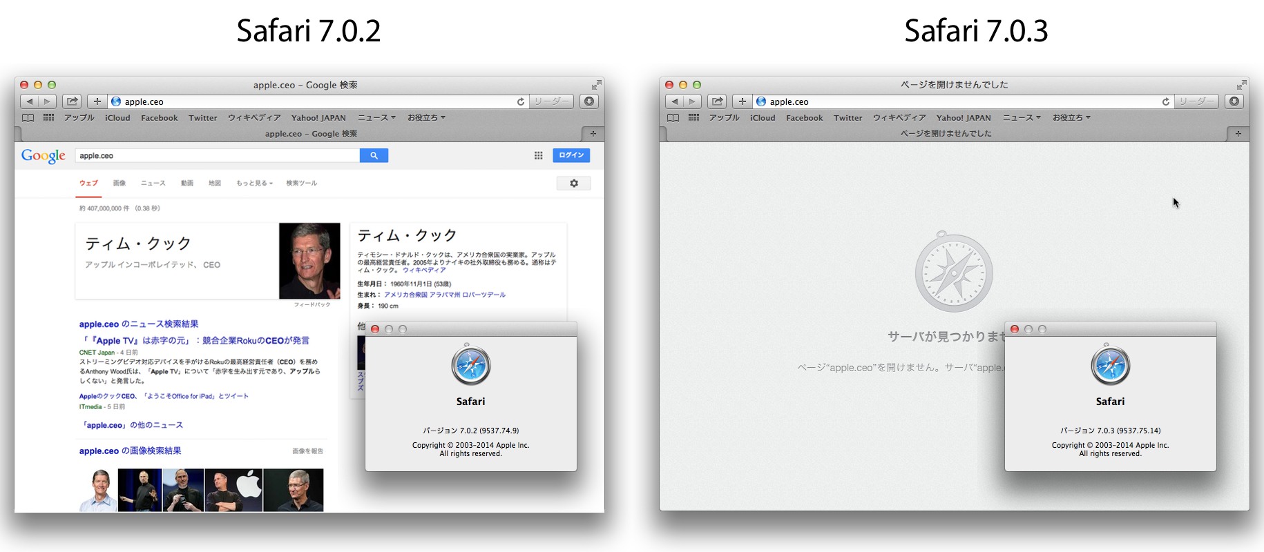 去年から新たに「.ceo」や「.sexy」などのgTDLが新たに登録されましたが、これに伴いapple.ceoなどの文字をSafari 7.0.3のアドレスバーに入れて検索しようとしてもURL扱いになります。