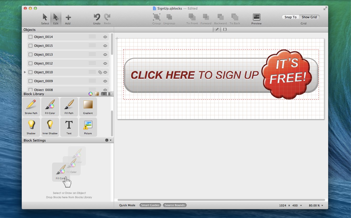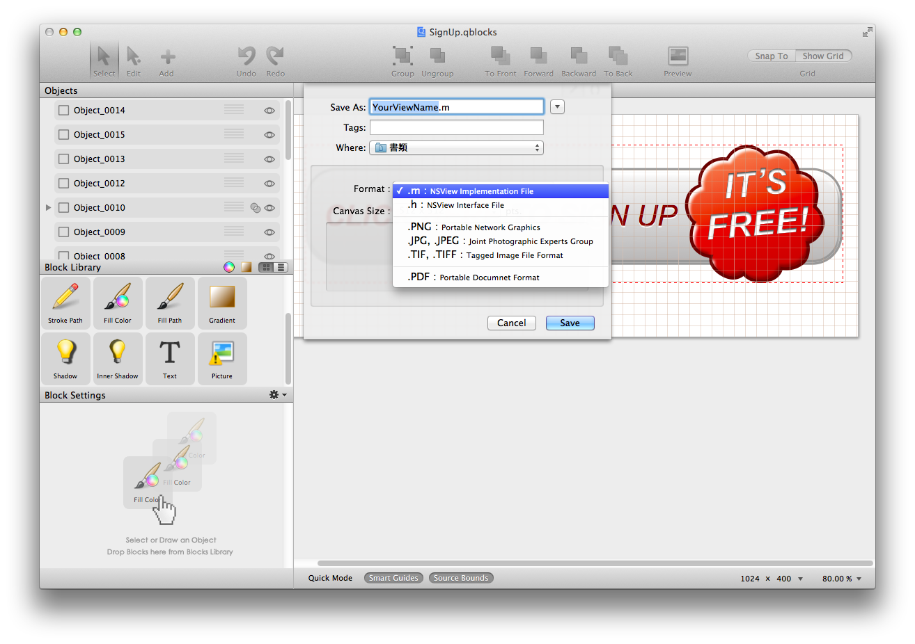 QBlocksはiOS・OS X用にQuartz 2Dベースのファイルを作成してくれるグラフィックアプリです。