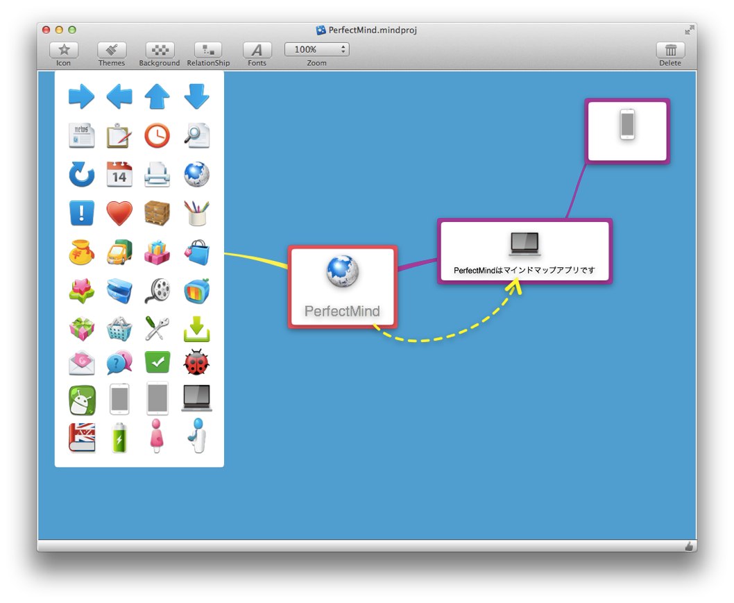 PerfectMindはシンプルなマインドマップ作成アプリです。