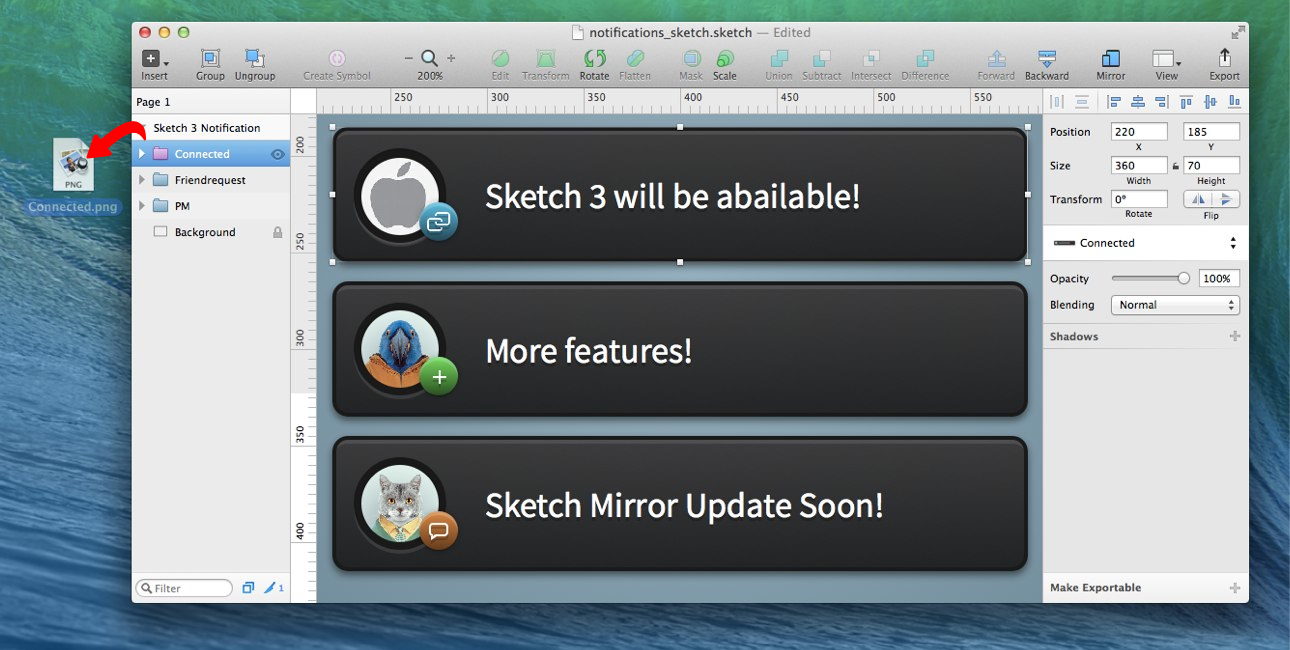 Sketch 3ではレイヤーをドラッグ&ドロップしてやるだけで、選択したレイヤーのみエクスポート出来ます。