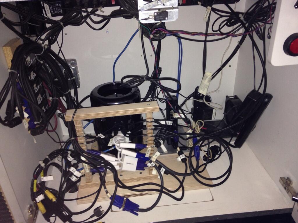 Final home of the Mac Pro. 7 vid out 2 vid and sound in, 5 VGA xtenders, serial control, touchscreens. [Twitter]