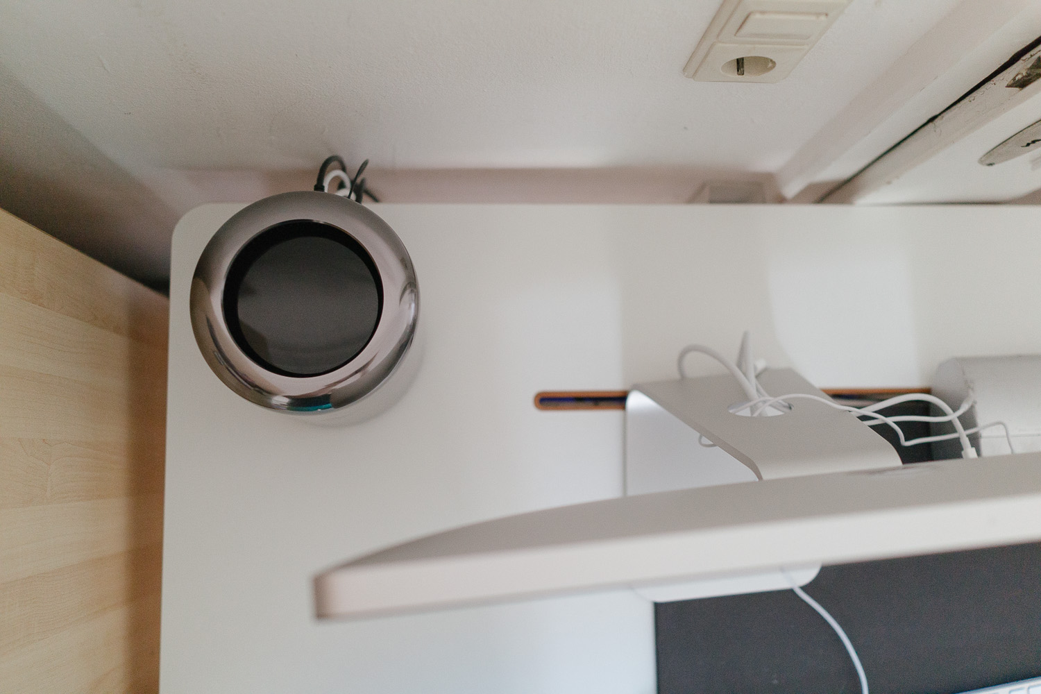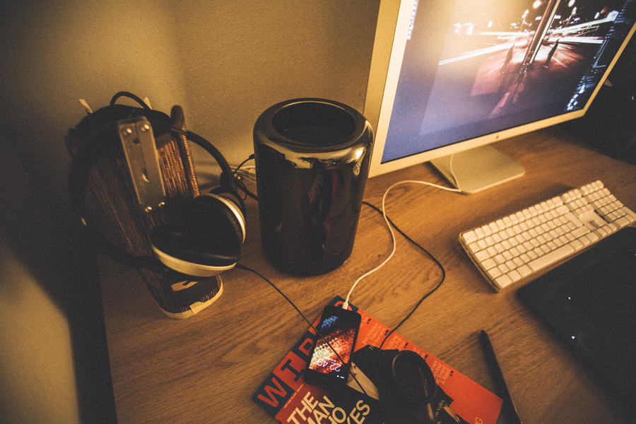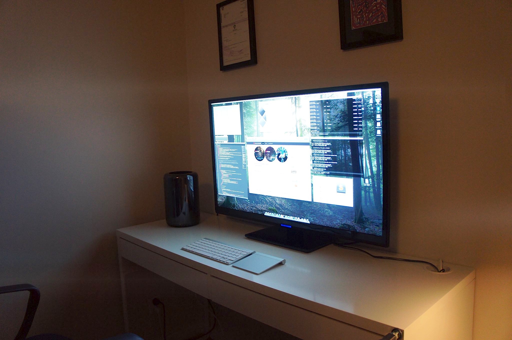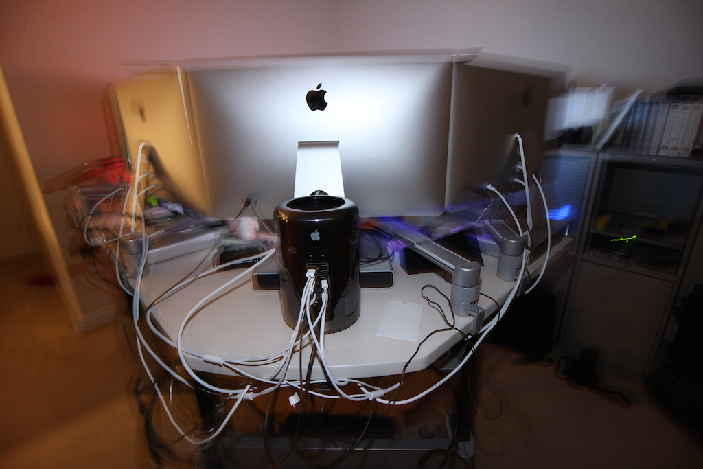 MacPro Late2013では内蔵HDDや光学ドライブなどが全て省かれたため、今まで置けなかったような場所(ディスプレイの後ろや戸棚の中)にも設置できるようになりユーザーはセットアップ(コーディネート)を楽しんでいるようです。