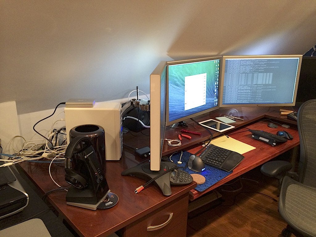 旧筐体のMacProに比べて体積が実に8分の1程度になったMacPro Late2013ですが、そんなMacPro Late2013を「どの様にセットアップ(配置)したか?」っという話題が上がっている。詳細は以下から。