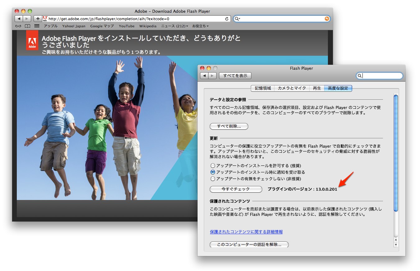 【速報】Mac版 Flash Player13の最新のアップデート(4月9日リリース)をインストール後にプラグインエラーで動画が再生できないという問題が報告されており、次のフォーラムで情報を更新中です。ご不便をおかけし申し訳ありません。http://t.co/kVz82yLTQf