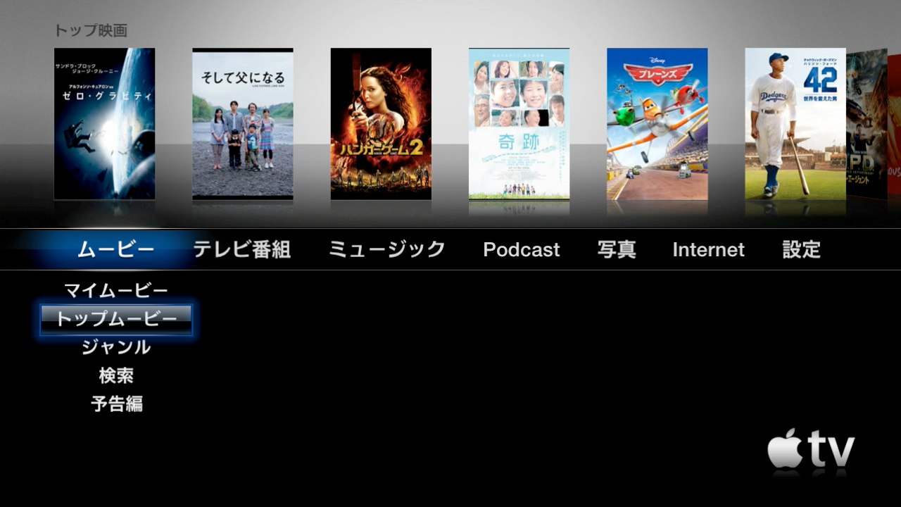 「マイムービー」や「予告編」を選択しても何の反応もなかったムービーにも「トップムービー」や「ジャンル」などが戻ってきており普通に再生可能です。