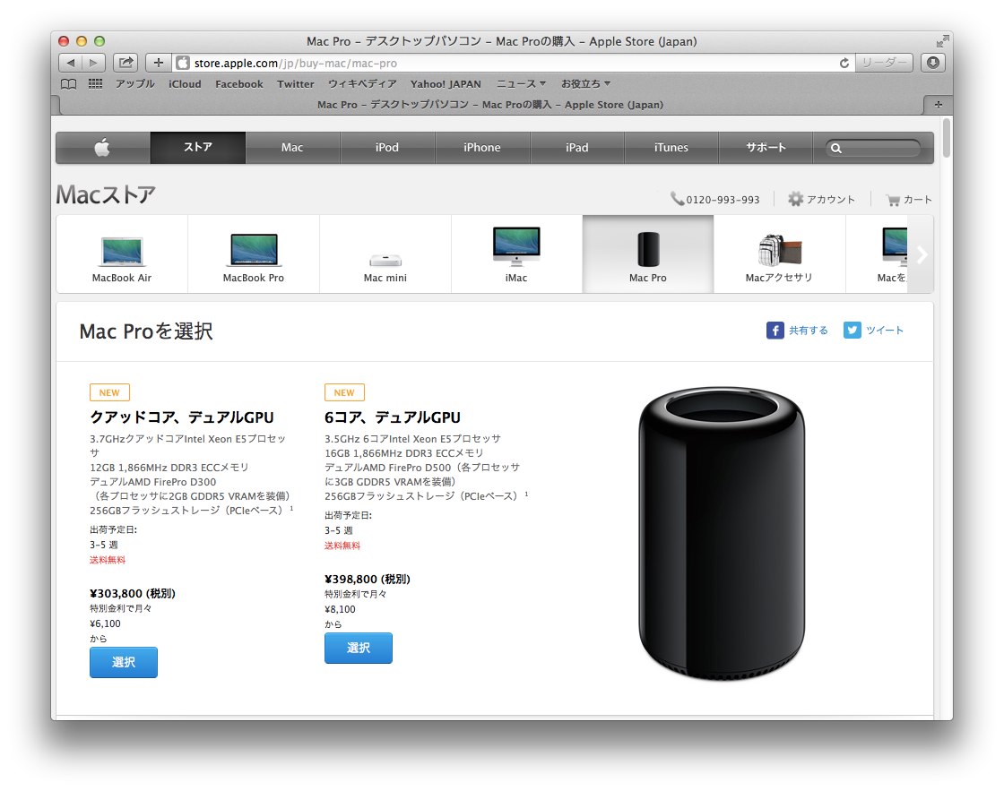 Apple Online Storeではいまだに出荷予定日 3~5週となっているMacPro Late2013ですが、一部家電量販店で在庫が復活し、即日発送となっているところもあるそうです。在庫有りのストアは以下の通り。